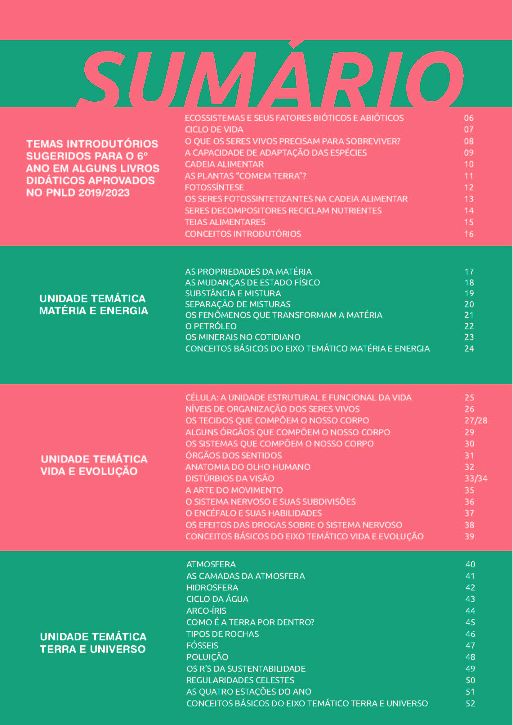 Respeitando a particularidade de cada região e a autonomia das redes de ensino para seguir a sequência didática que for acordada entre os docentes, os caça-palavras de Ciências da Natureza foram elaborados e organizados com foco nas Unidades Temáticas e Objetos de Conhecimento presentes na BNCC e em temas introdutórios que os livros didáticos aprovados no PNLD 2019/2023 sugerem para os respectivos anos escolares. A seguir você terá uma visão geral de como esse material está disposto e pronto para lhe servir. Delicie-se e leve para a sua sala de aula mais essa experiência lúdica e didática.