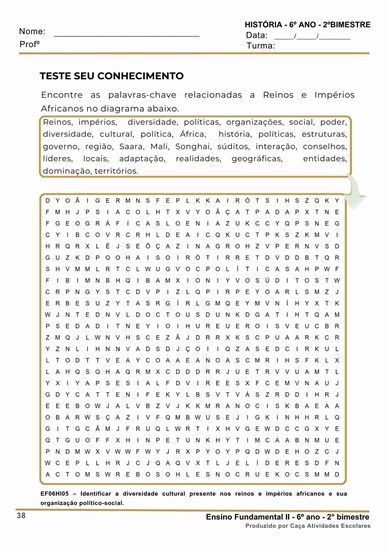 Esta apostila é referente ao 2º BIMESTRE, de acordo com o BASE NACIONAL COMUM CURRICULAR para o Componente curricular de HISTÓRIA para o Ensino Fundamental 2 (6º ano). Este projeto terá 16 apostilas com atividades variadas. As atividades contém os códigos de Habilidades BNCC. Em cada uma das apostilas você encontrará: