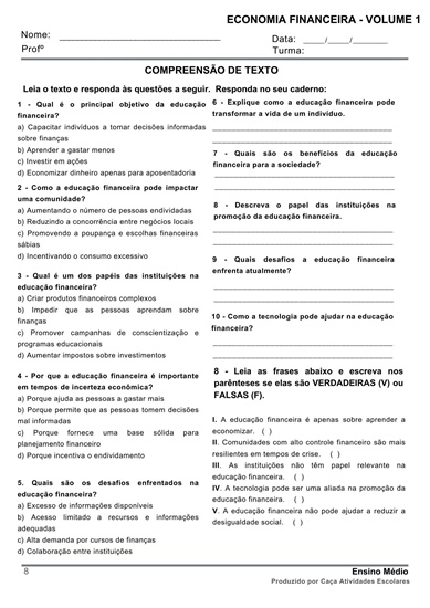 Esta apostila conta com 13 temas relacionados a Eletiva de EDUCAÇÃO FINANCEIRA para o Ensino Médio.