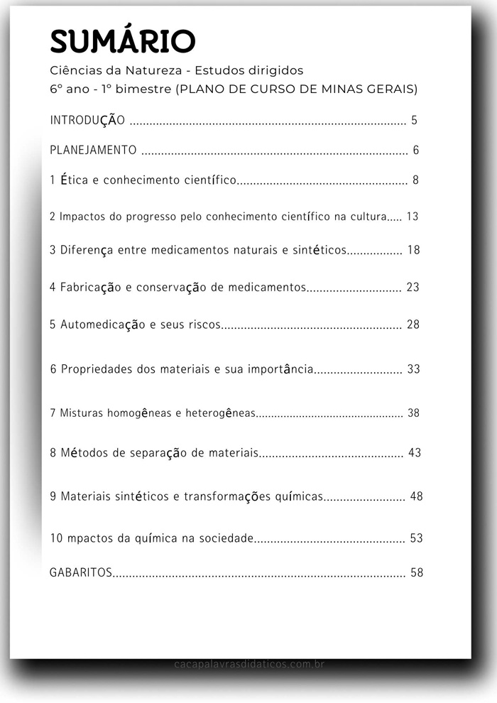 Esta apostila é referente ao 1º BIMESTRE de CIÊNCIAS DA NATUREZA – PLANO DE CURSO DE MINAS GERAIS DE 2025, para o Ensino Fundamental 2 (6º ano). Este projeto terá 16 apostilas com atividades variadas. Em cada uma das apostilas você encontrará: