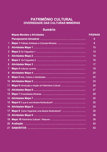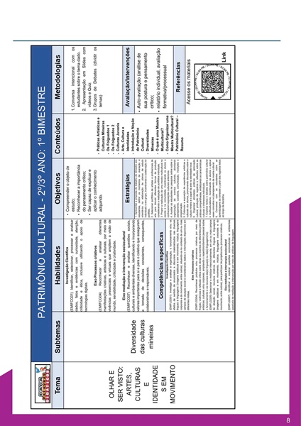 Esta apostila conta com 10 temas para o Itinerário Formativo de PATRIMÔNIO CULTURAL – 2º/3º ANO : 1º BIMESTRE – PLANO DE CURSO DE MINAS GERAIS 2024.