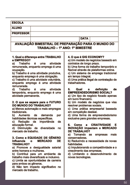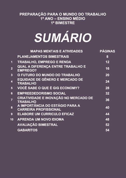 Esta apostila conta com 10 temas para o itinerário PREPARAÇÃO PARA O MUNDO DO TRABALHO – 1º ANO : 1º BIMESTRE – PLANO DE CURSO DE MINAS GERAIS 2024.
