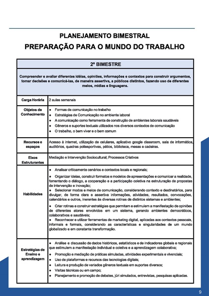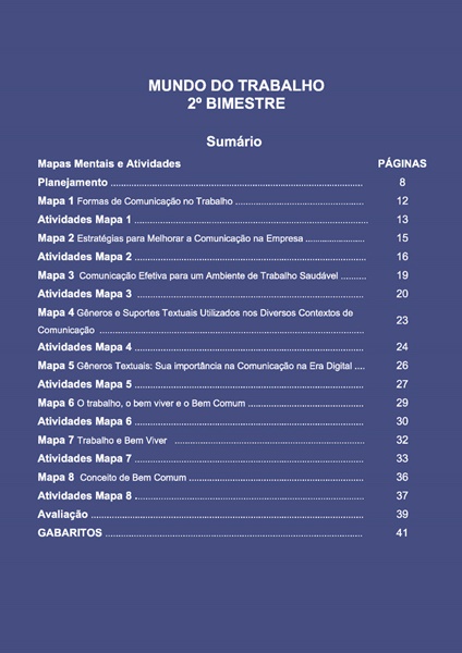 Esta apostila conta com 8 temas para o itinerário PREPARAÇÃO PARA O MUNDO DO TRABALHO – 1º ANO : 2º BIMESTRE – PLANO DE CURSO DE MINAS GERAIS 2024.
