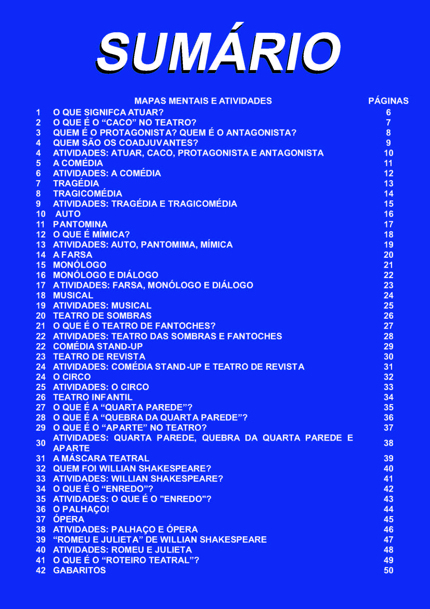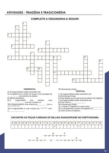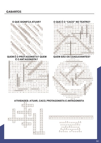 Dessa maneira, o conjunto das 41 atividades aqui propostos (30 caça-palavras e 11 páginas com cruzadinhas e criptogramas) incluem o conteúdo de todo ensino fundamental e médio no que concerne ao TEATRO de acordo com a Base Nacional Comum Curricular (BNCC).