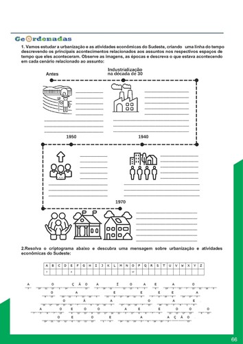 Nossas atividades são fruto de anos de pesquisa na técnica dos mapas mentais, caça-palavras e inteligências múltiplas. No início da apostila, você irá se deparar com uma tabela atualizada da BNCC, relacionando cada material a seu objeto de conhecimento e habilidades relacionadas. Logo em seguida, você conhecerá mais sobre as técnicas empregadas para desenvolver nosso projeto e poderá, enfim, ingressar no mundo Geordenadas, abordando novas formas de ensinar e aprender Geografia. Neste volume seu aluno irá desenvolver a habilidades referentes a inteligência espacial através de desenho e pinturas, o raciocínio a partir dos criptogramas e a inteligência linguística com base nos caça-palavras e cruzadinhas.