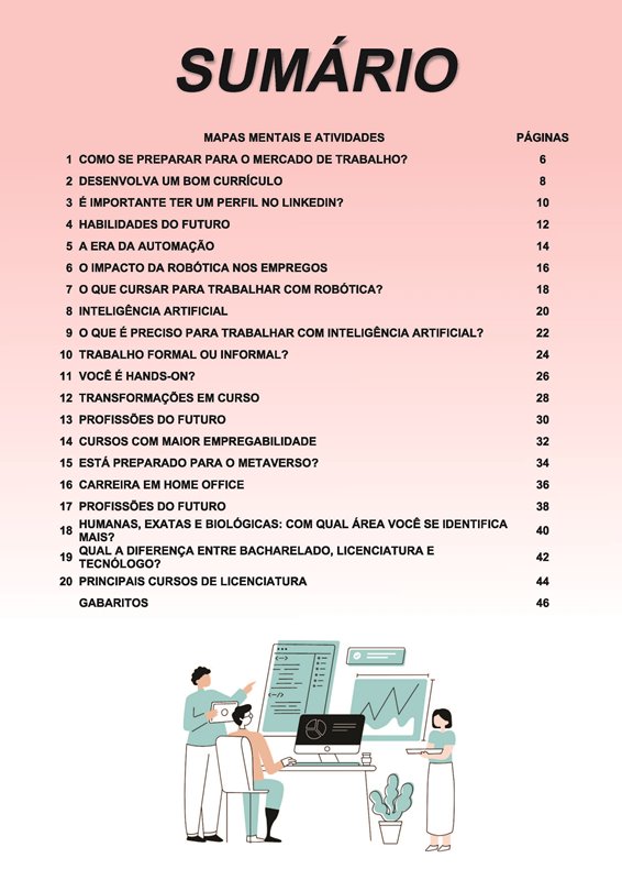 Esta apostila conta com 20 MAPAS MENTAIS, CAÇA-PALAVRAS, CRUZADINHAS E CRIPTOGRAMAS sobre as PROFISSÕES. As atividades podem lhe auxiliar nas diversas disciplinas eletivas do NOVO ENSINO MÉDIO.