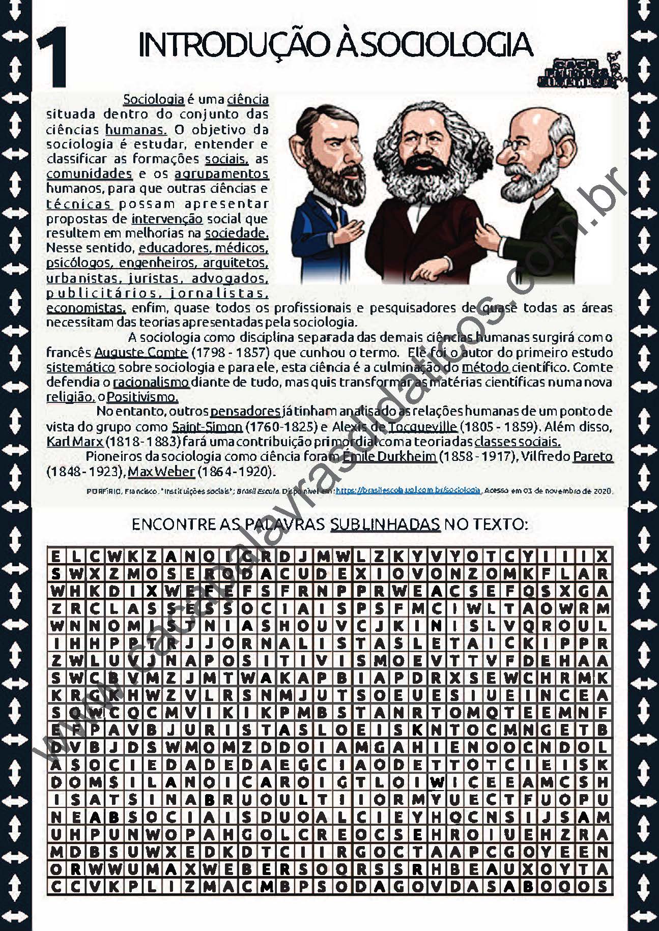 APOSTILA DE CAÇA-PALAVRAS DE SOCIOLOGIA – VOLUME ÚNICO (PDF)