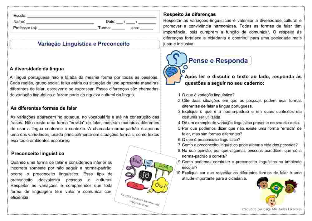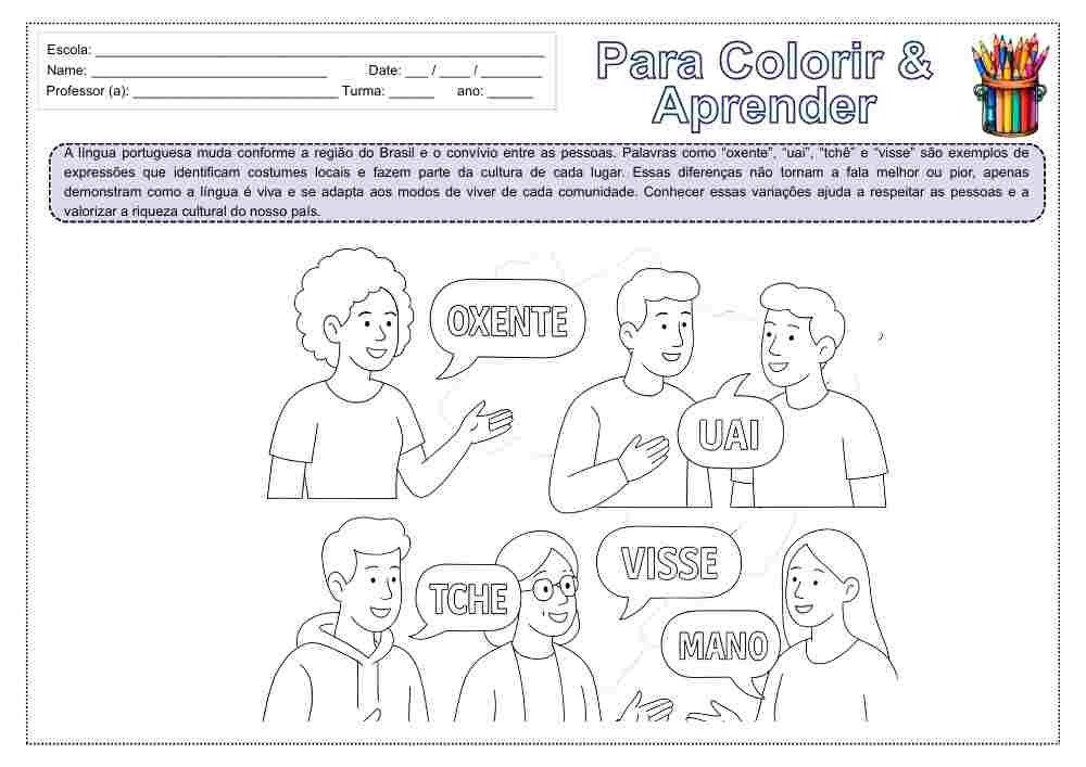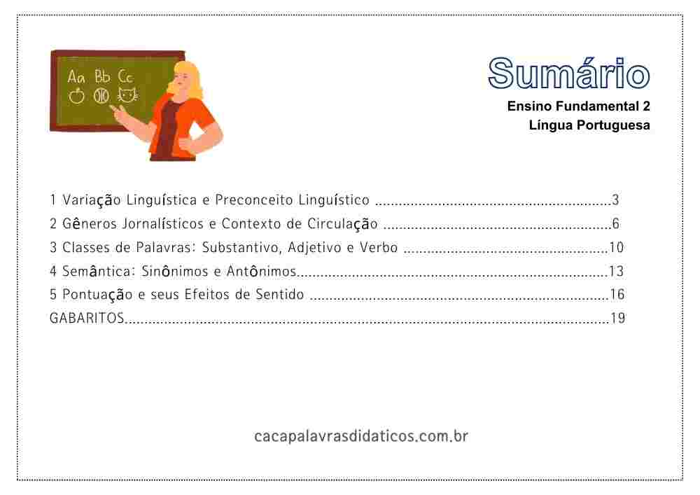🎯 Objetivo: Desenvolver a compreensão e o uso da língua portuguesa de forma interativa e criativa, estimulando o entendimento sobre variações linguísticas, a importância dos gêneros jornalísticos, as classes de palavras e o uso correto da pontuação.