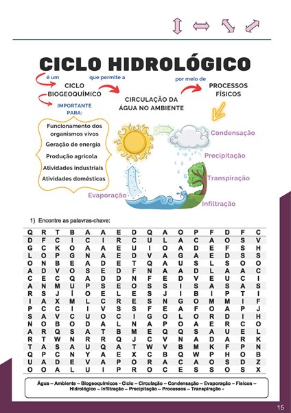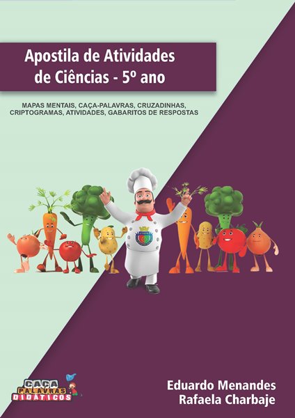 O material contém Mapas Mentais, Caça-palavras, Cruzadinhas e Atividades variadas. As atividades seguem as Unidades temáticas da BNCC.