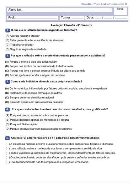 Esta apostila conta com 8 temas de FILOSOFIA PARA O 7º ANO – 3º E 4º BIMESTRE.