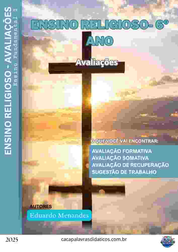 Esta apostila contém as avaliações e trabalhos de ENSINO RELIGIOSO (PLANO DE CURSO DE MINAS GERAIS – 2025) para o 6º ano do Ensino Fundamental II, referente ao 4º bimestre.