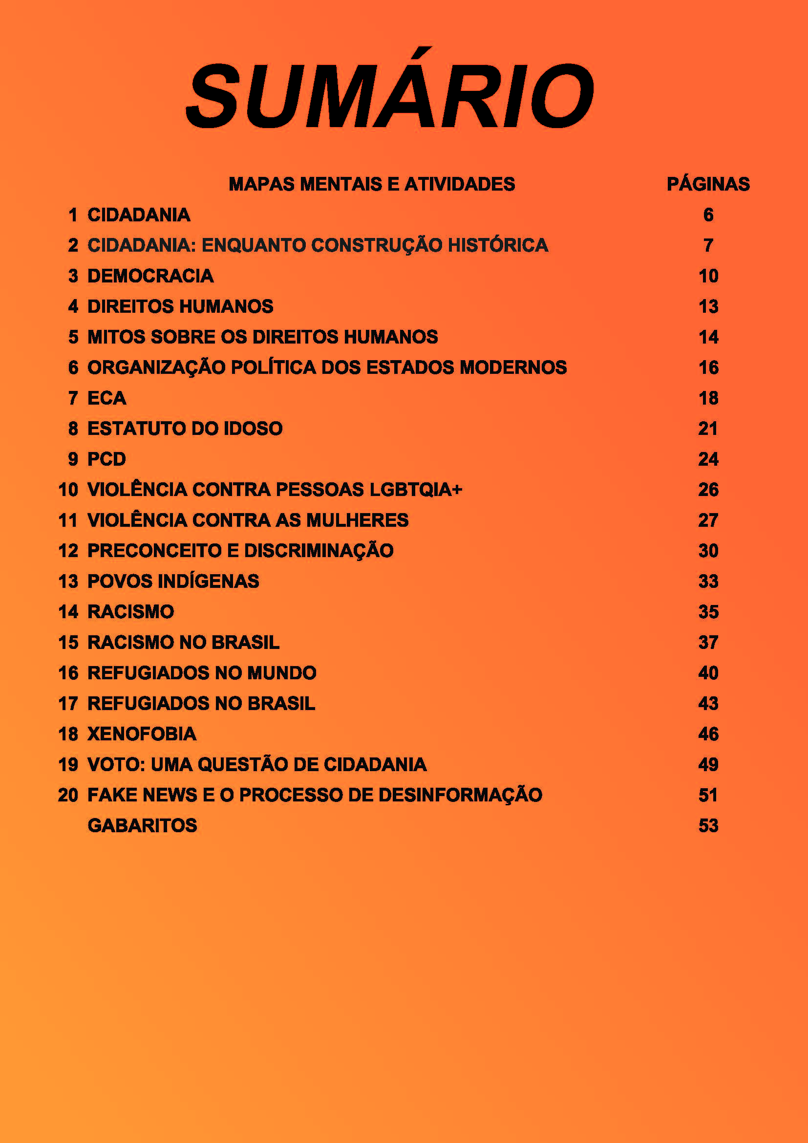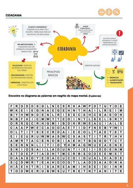 Esta apostila conta com 20 MAPAS MENTAIS, CAÇA-PALAVRAS, CRUZADINHAS, CRIPTOGRAMAS E ATIVIDADES RELACIONADAS sobre as CIDADANIA E DIREITOS HUMANOS. As atividades podem lhe auxiliar nas diversas disciplinas eletivas do NOVO ENSINO MÉDIO.