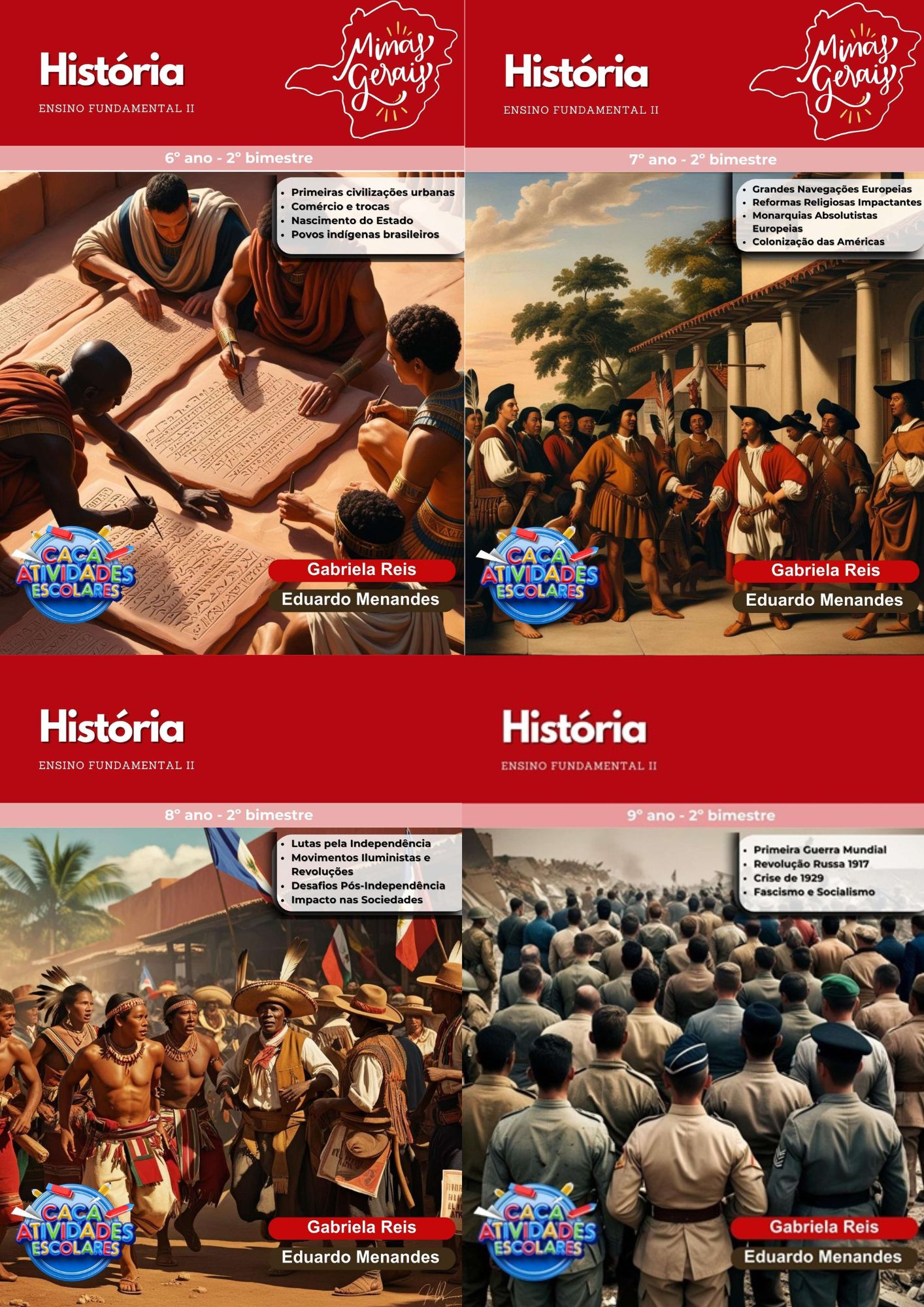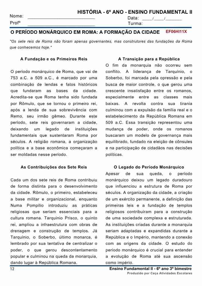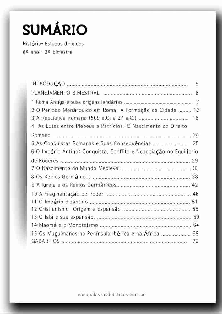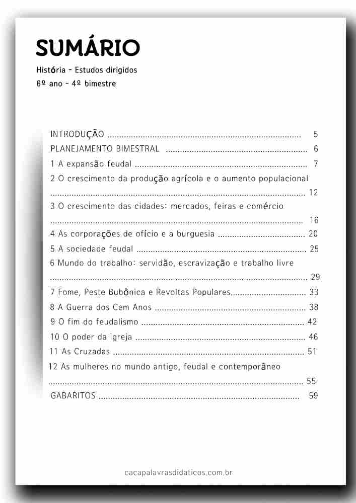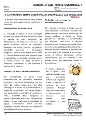 Este combo contém 16 apostilas de atividades para os 4 BIMESTRES de HISTÓRIA para o Ensino Fundamental 2 (6º ao 9º ano). As atividades contém os códigos de Habilidades BNCC. Em cada uma das apostilas você encontrará: