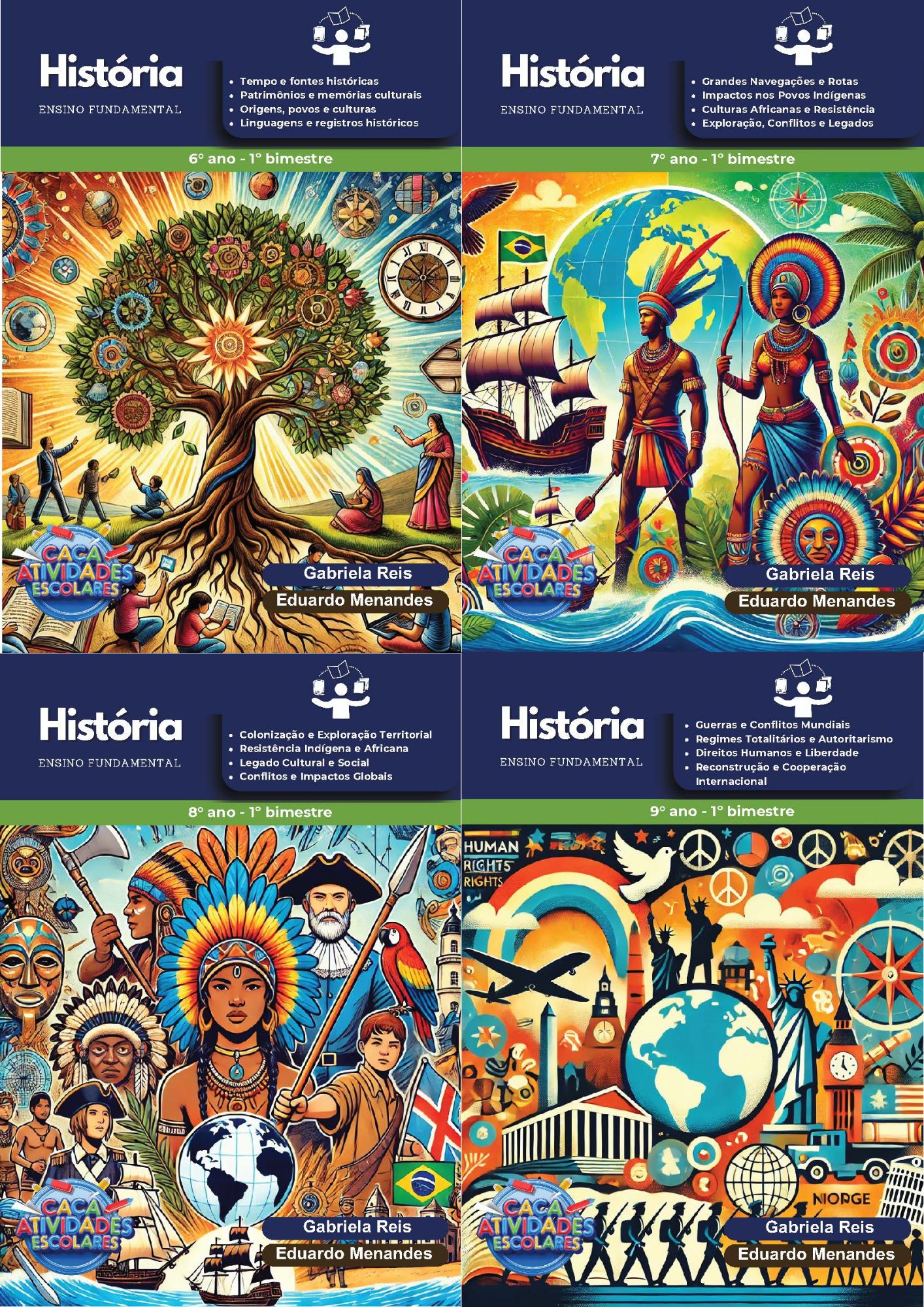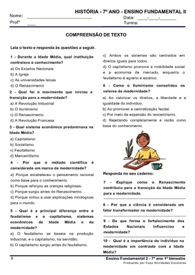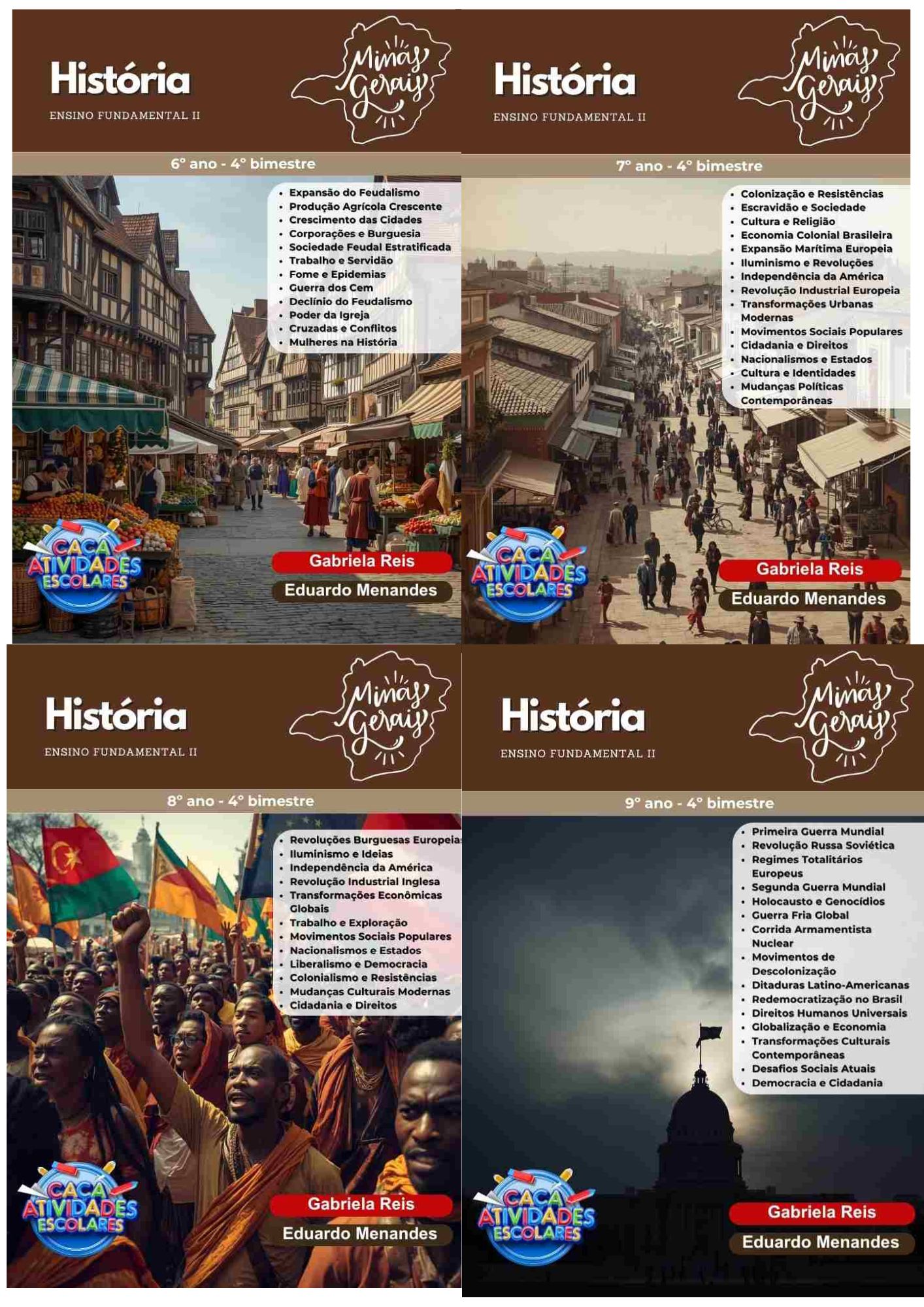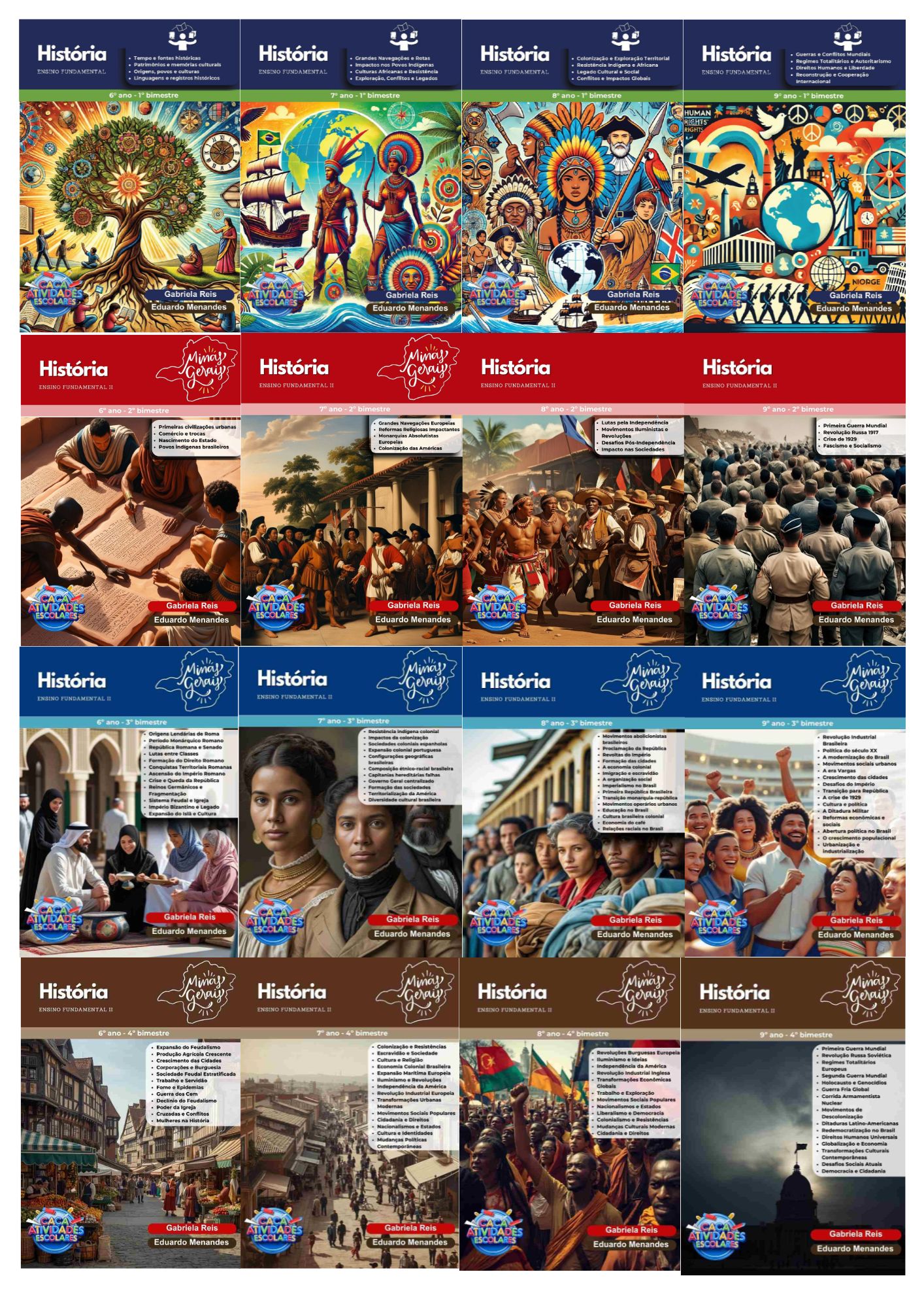 Este combo contém 16 apostilas de atividades para os 4 BIMESTRES de HISTÓRIA para o Ensino Fundamental 2 (6º ao 9º ano). As atividades contém os códigos de Habilidades BNCC. Em cada uma das apostilas você encontrará: