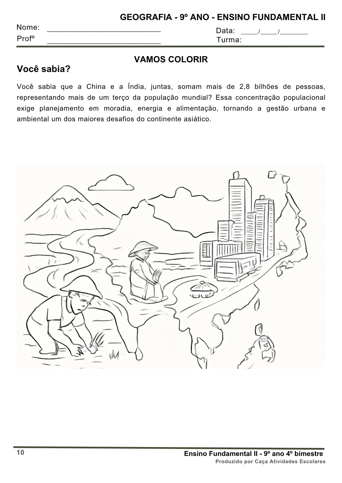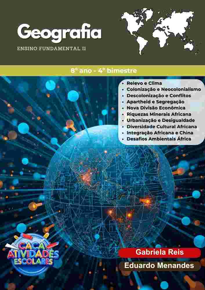 Este combo contém 4 apostilas referentes ao 4º BIMESTRE de GEOGRAFIA (BASE NACIONAL COMUM CURRICULAR), para o Ensino Fundamental 2 (6º ao 9º ano). Este projeto contém 16 apostilas com atividades variadas. As atividades contém os códigos de Habilidades BNCC. Em cada uma das apostilas você encontrará: