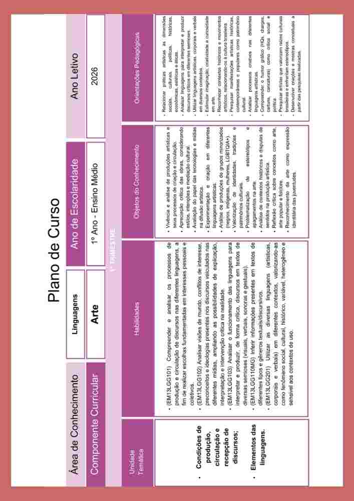 Esta apostila contém 3 apostilas de ESTUDOS DIRIGIDOS de ARTE (PLANO DE CURSO DE MINAS GERAIS – 2025) para o 1º ao 3º ano do Ensino Médio, referente ao 1ºTrimestre.