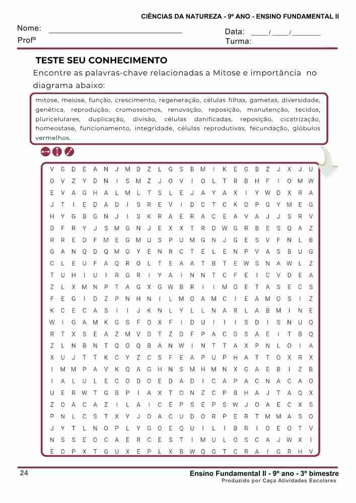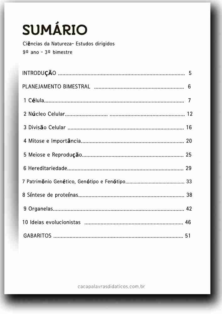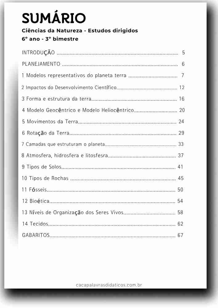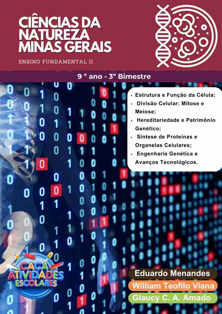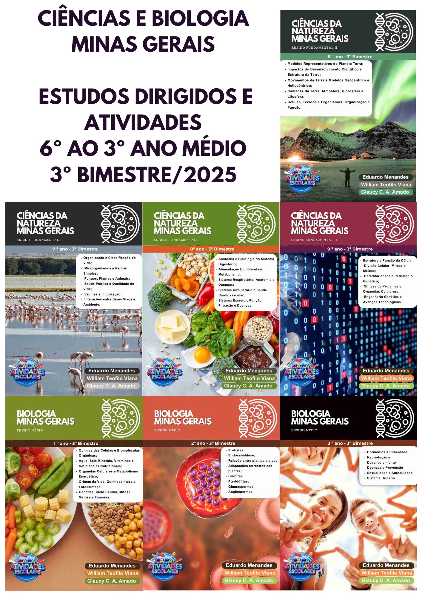 Este combo contém 7 apostilas de atividades de BIOLOGIA E CIÊNCIAS DA NATUREZA – PLANO DE CURSO DE MINAS GERAIS (2025) para o Ensino Fundamental 2 (6º ao 3º ano), referentes aos conteúdos do 3º BIMESTRE. Este projeto terá 16 apostilas com atividades variadas. Em cada uma das apostilas você encontrará: