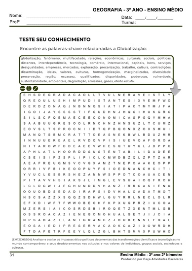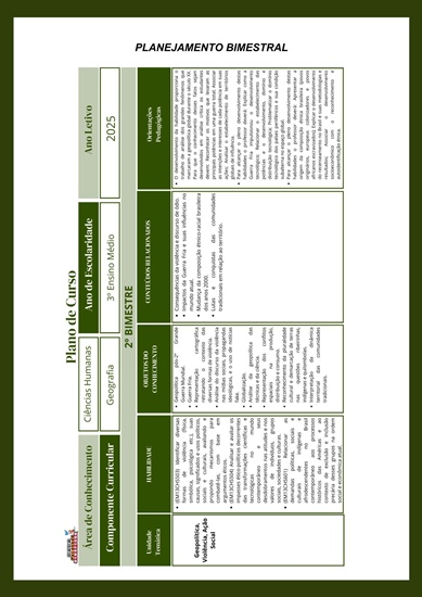 Estee combo contém 3 apostilas referentes ao 2º BIMESTRE de GEOGRAFIA (PLANO DE CURSO DE MINAS GERAIS – 2025) para o Ensino Médio (1º ao 3º ano). Este projeto terá 12 apostilas com atividades variadas. As atividades contém os códigos de Habilidades BNCC. Em cada uma das apostilas você encontrará: