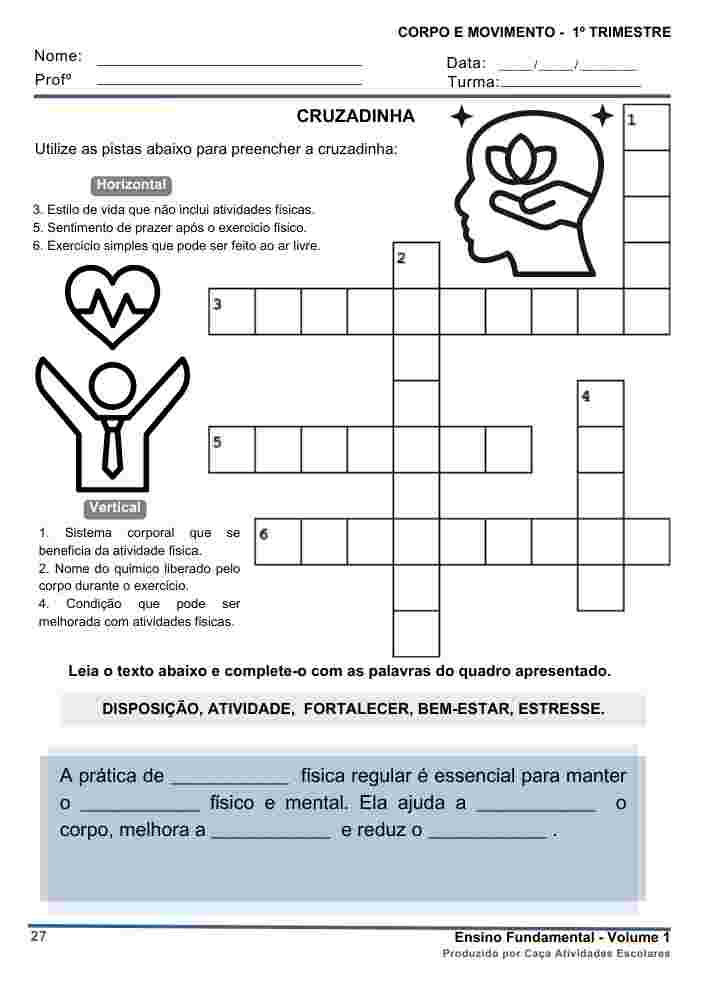 Explore o mundo do corpo e seus movimentos de maneira divertida e educativa com esta apostila exclusiva para o Ensino Fundamental! Criada de acordo com a BNCC, esta apostila traz temas essenciais para o desenvolvimento físico e emocional dos estudantes.