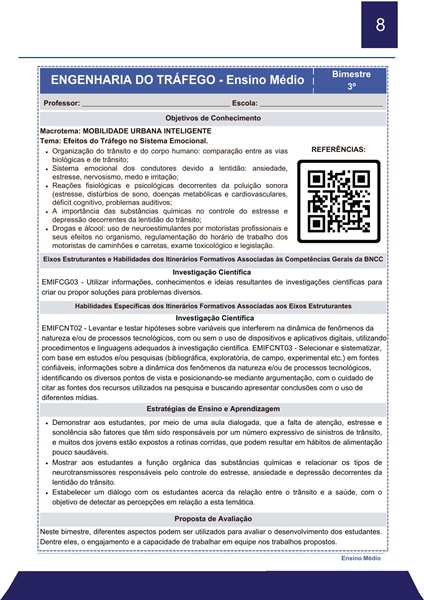 Esta apostila conta com 11 temas para o itinerário ENGENHARIA DE TRÁFEGO – 2º/3º ANO : 3º BIMESTRE – PLANO DE CURSO DE MINAS GERAIS 2024.