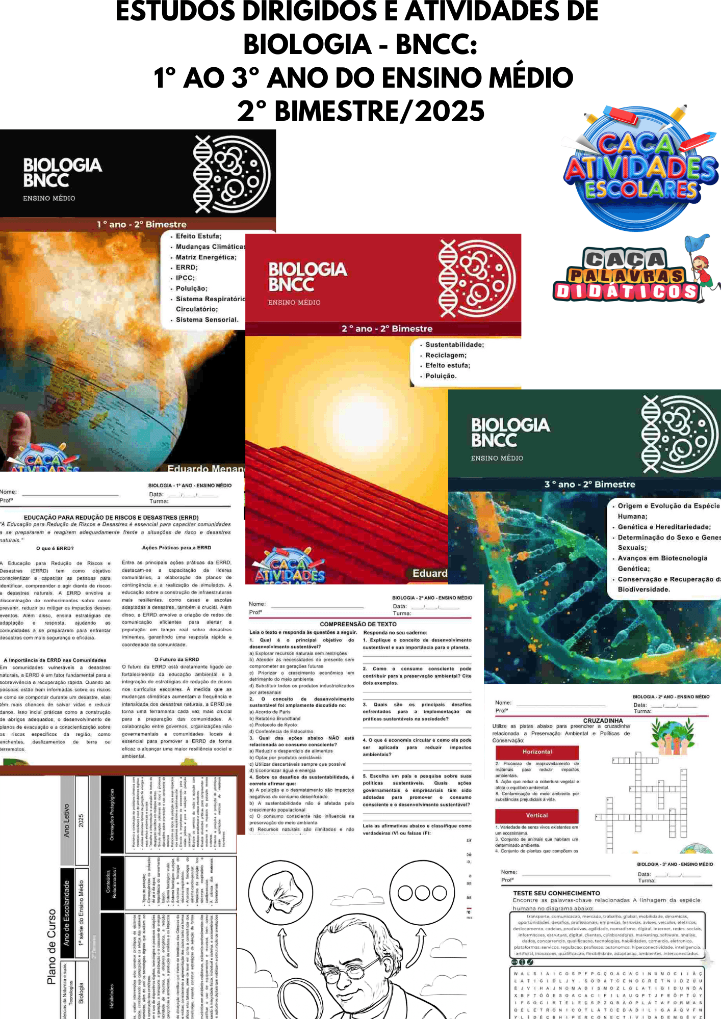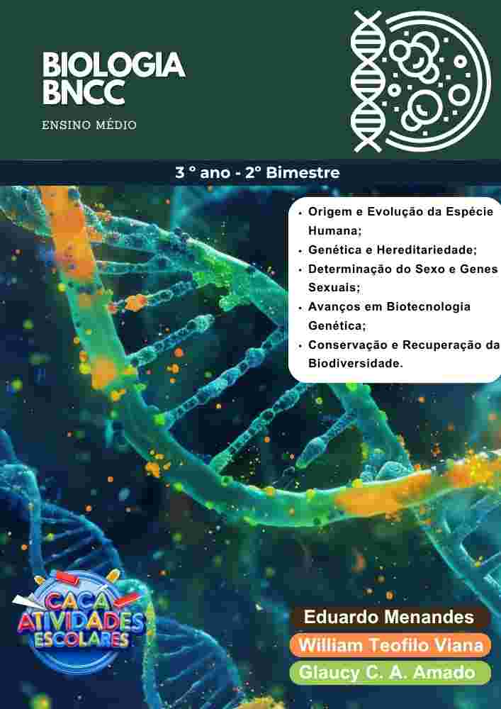 Esta combo contém 3 apostilas referentes ao 2º BIMESTRE de BIOLOGIA de acordo com a BNCC para o Ensino Médio (1º , 2º e 3º ano). Este projeto terá 12 apostilas com atividades variadas. Em cada uma das apostilas você encontrará:
