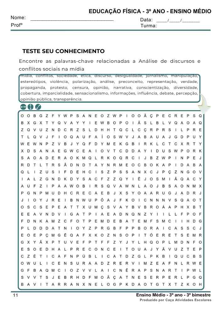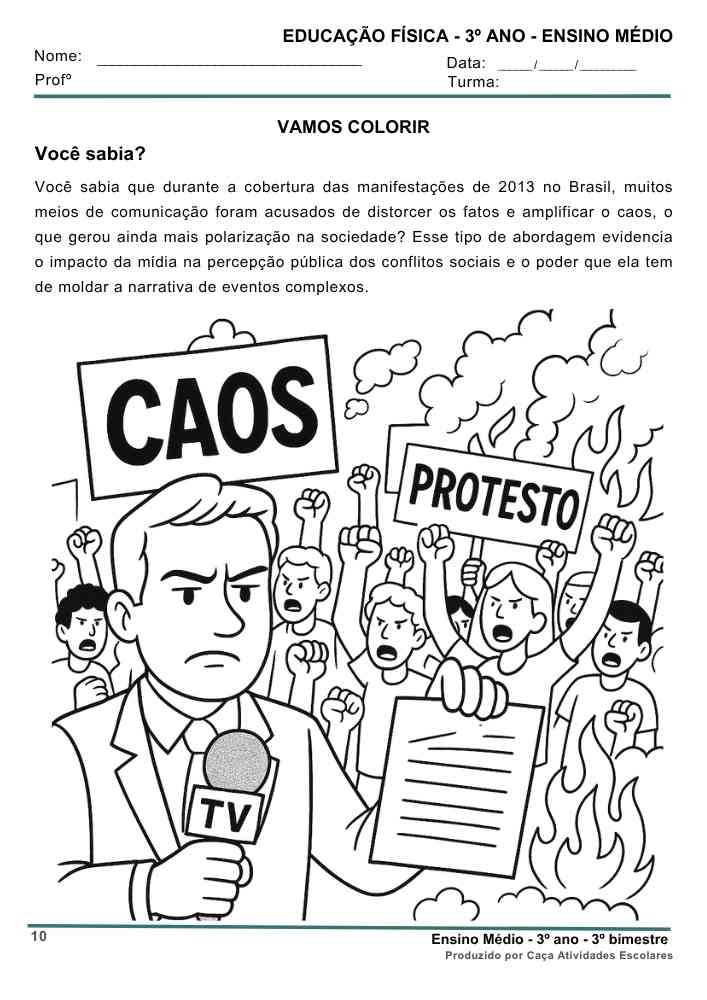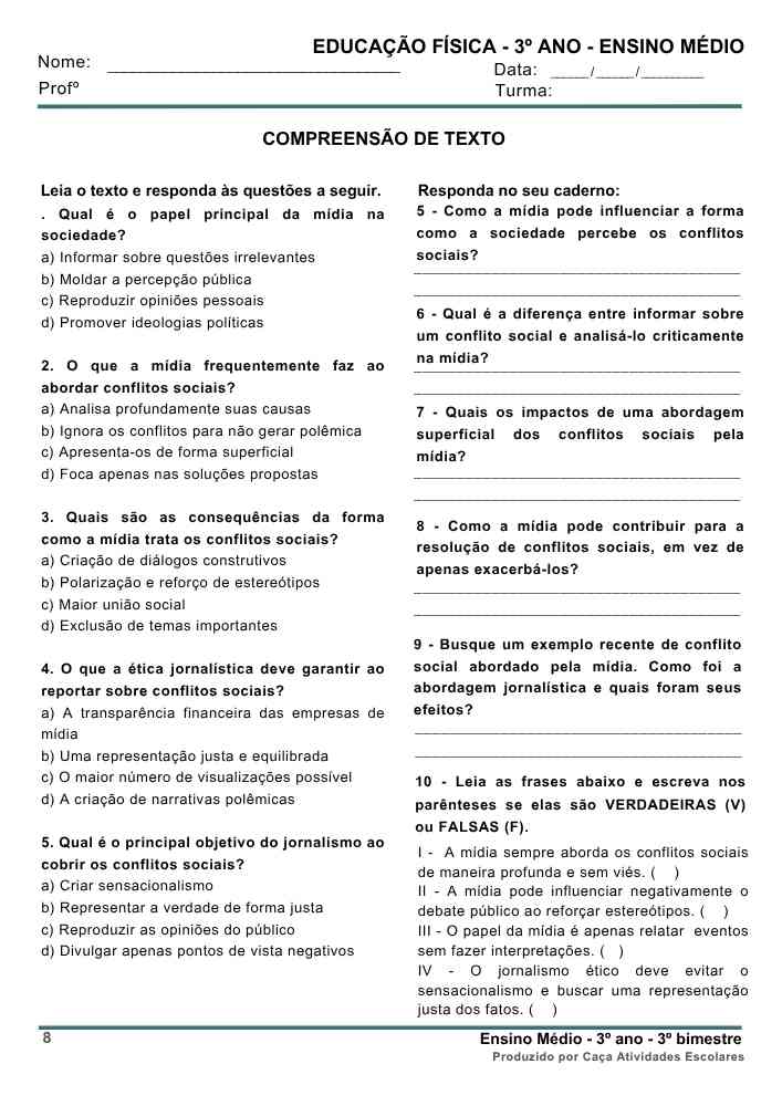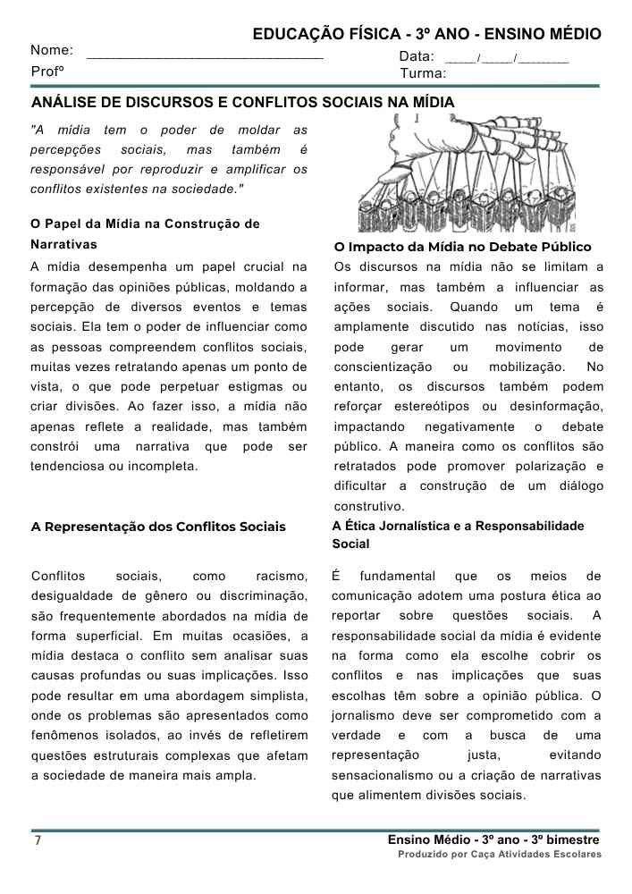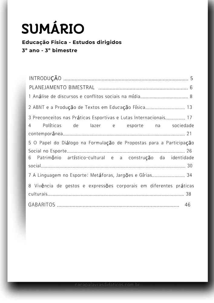 Esta apostila é referente ao 3º BIMESTRE de EDUCAÇÃO FÍSICA para o Ensino Médio (3º ano). Este projeto terá 12 apostilas com atividades variadas. Em cada uma das apostilas você encontrará: