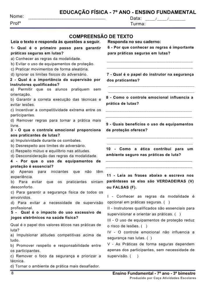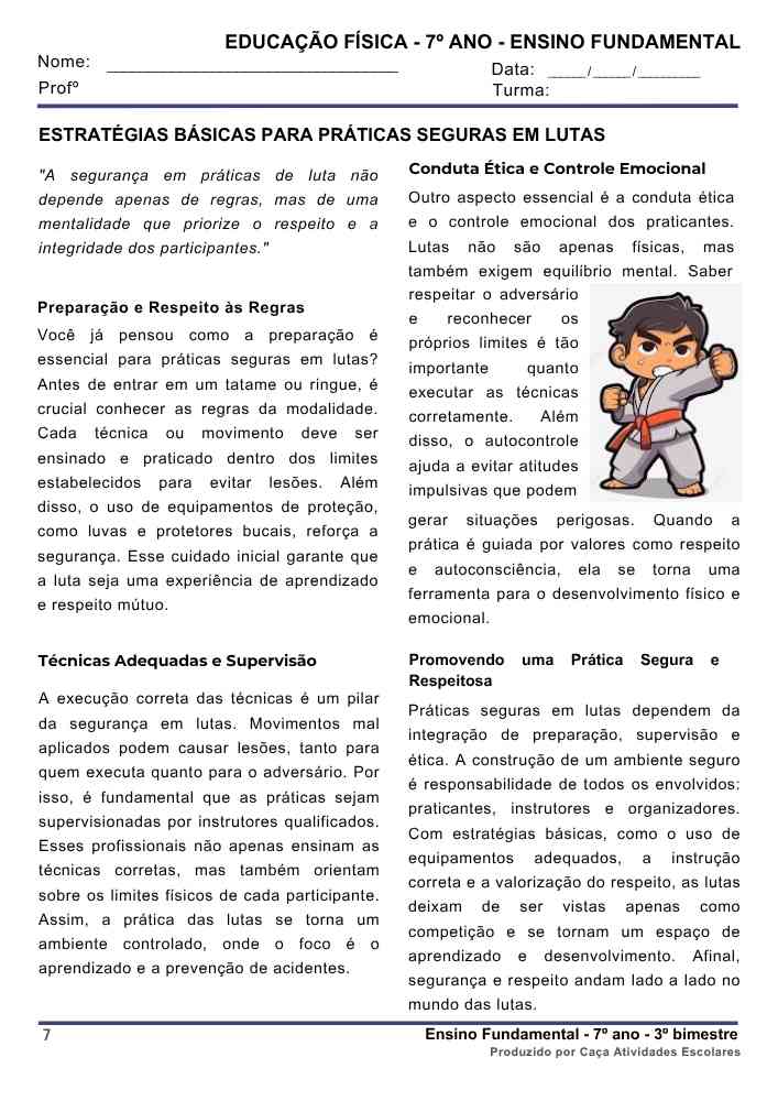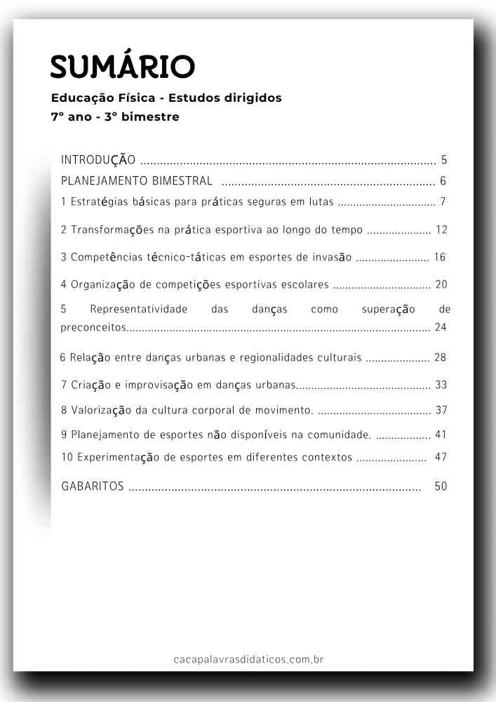 Esta apostila é referente ao 3º BIMESTRE de EDUCAÇÃO FÍSICA para o Ensino Médio (7º ano). Este projeto terá 16 apostilas com atividades variadas. Em cada uma das apostilas você encontrará: