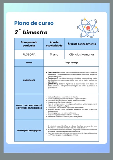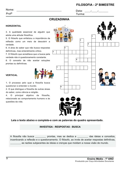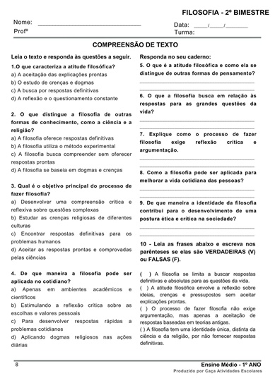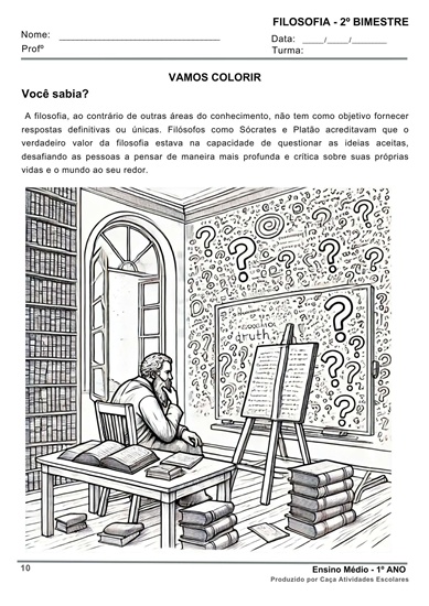 Esta apostila é referente ao 2º BIMESTRE de FILOSOFIA para o Ensino Médio (1º ano). Este projeto terá 12 apostilas com atividades variadas. Em cada uma das apostilas você encontrará:
