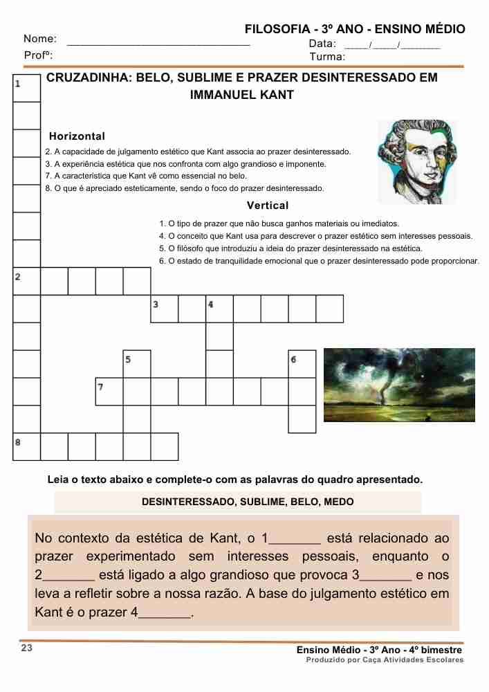 Esta combo contém 3 apostilas referentes ao 4º BIMESTRE de FILOSOFIA para o Ensino Médio (1º , 2º e 3º ano). Este projeto terá 12 apostilas com atividades variadas. Em cada uma das apostilas você encontrará: