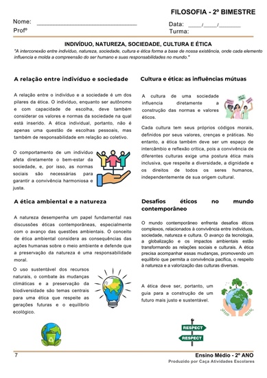 Esta apostila é referente ao 2º BIMESTRE de FILOSOFIA para o Ensino Médio (2º ano). Este projeto terá 12 apostilas com atividades variadas. Em cada uma das apostilas você encontrará: