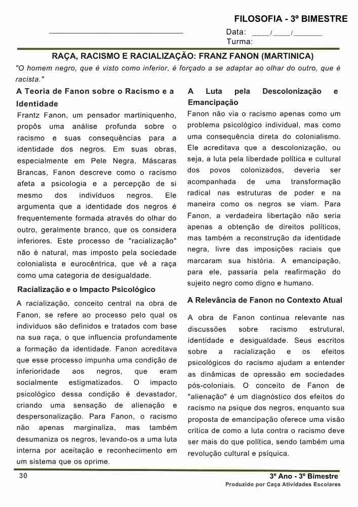 Esta apostila é referente ao 3º BIMESTRE de FILOSOFIA para o Ensino Médio (3º ano). Este projeto terá 12 apostilas com atividades variadas. Em cada uma das apostilas você encontrará: