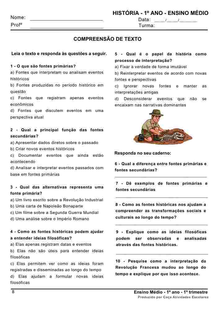 Esta apostila é referente ao 1º TRIMESTRE de HISTÓRIA para o Ensino Médio (1º ano). Este projeto terá 9 apostilas com atividades variadas. As atividades contém os códigos de Habilidades BNCC. Em cada uma das apostilas você encontrará:
