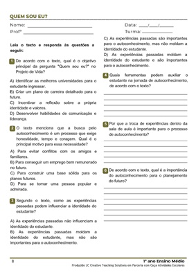 Esta apostila contém 8 ESTUDOS DIRIGIDOS de PROJETO DE VIDA para o 1º ano do Ensino Médio, referentes ao 1º bimestre de 2025.