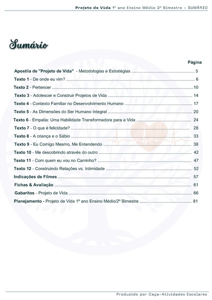 Esta apostila contém 12 ESTUDOS DIRIGIDOS de PROJETO DE VIDA para o 1º ano do Ensino Médio, referentes ao 2º bimestre de 2024.