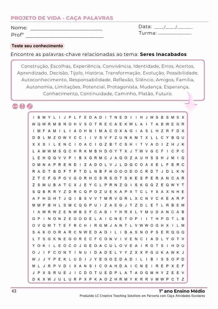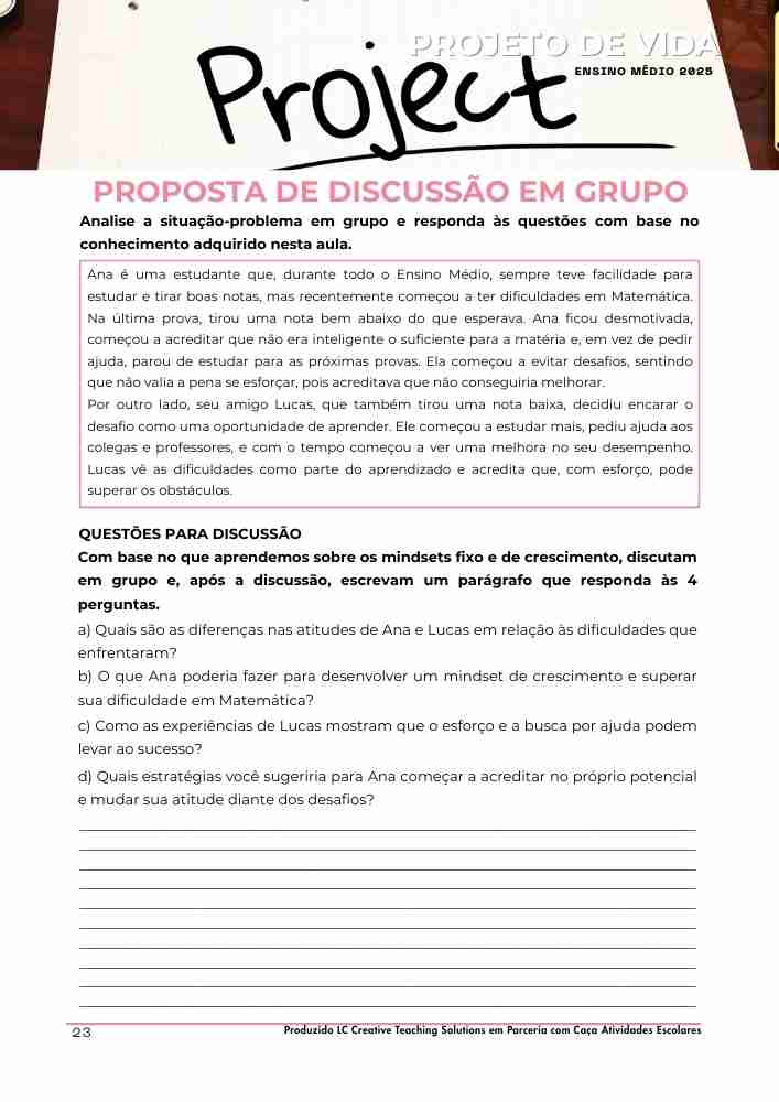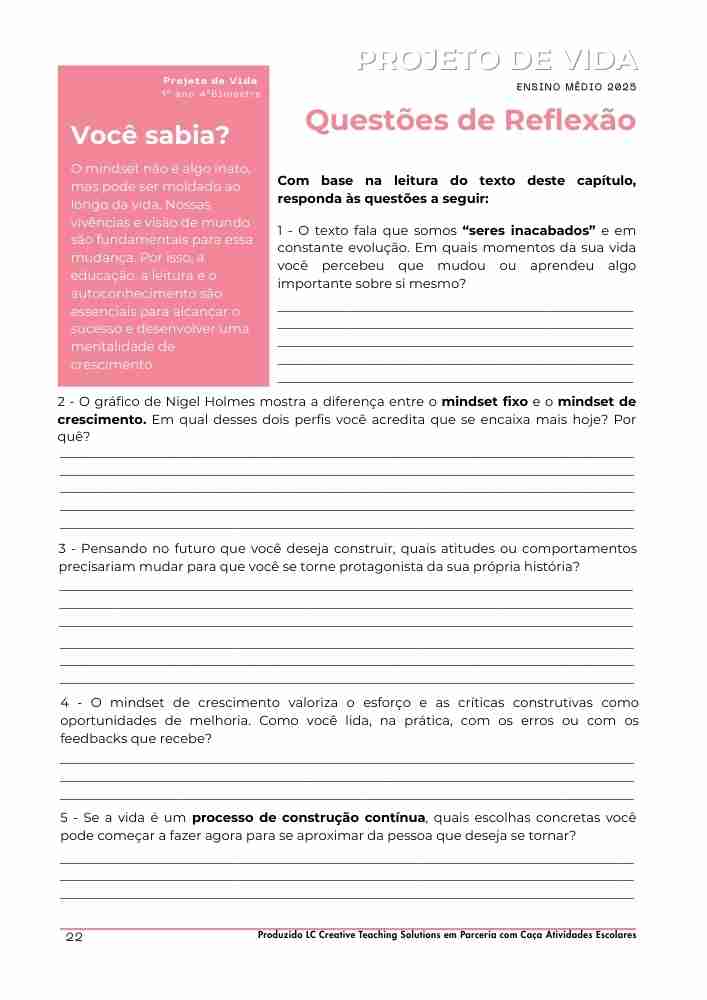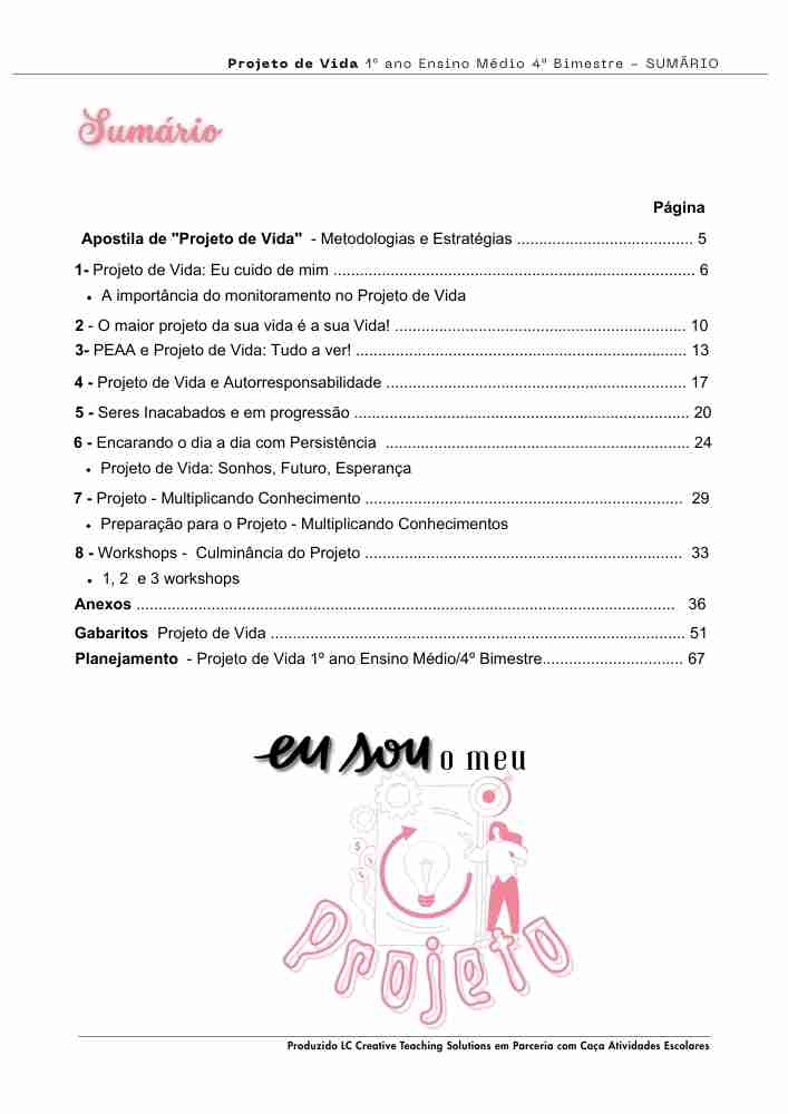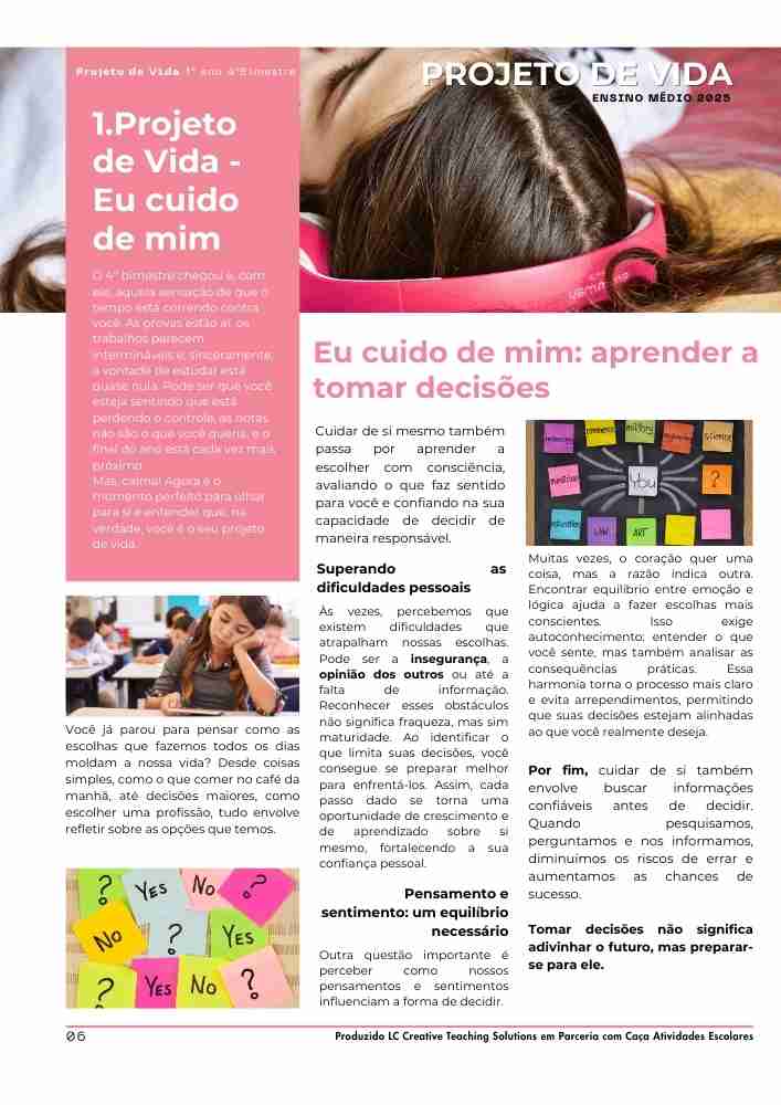 Esta apostila contém 7 ESTUDOS DIRIGIDOS de PROJETO DE VIDA para o 1º ano do Ensino Médio, referentes ao 4º bimestre de 2025.