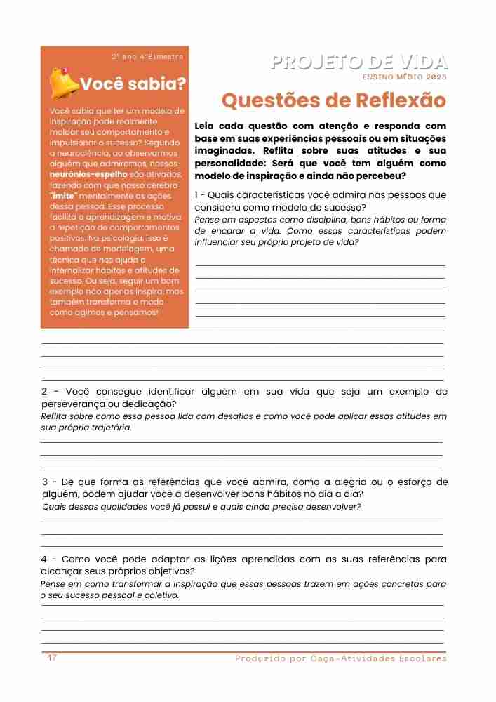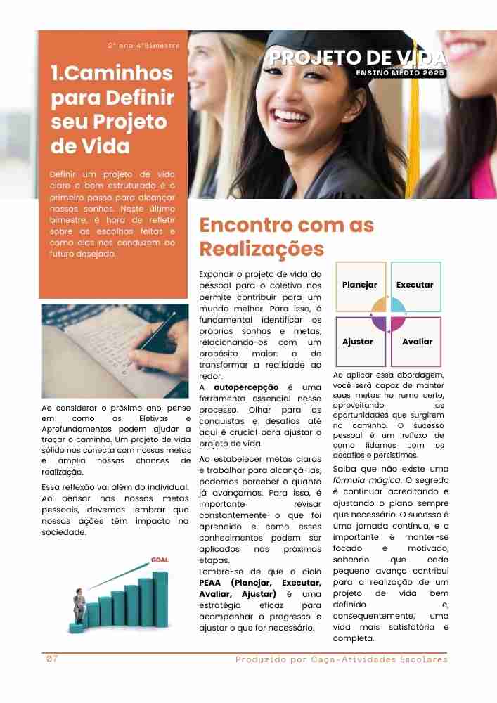 Esta apostila contém 8 ESTUDOS DIRIGIDOS de PROJETO DE VIDA para o 2º ano do Ensino Médio, referentes ao 4º bimestre de 2025.