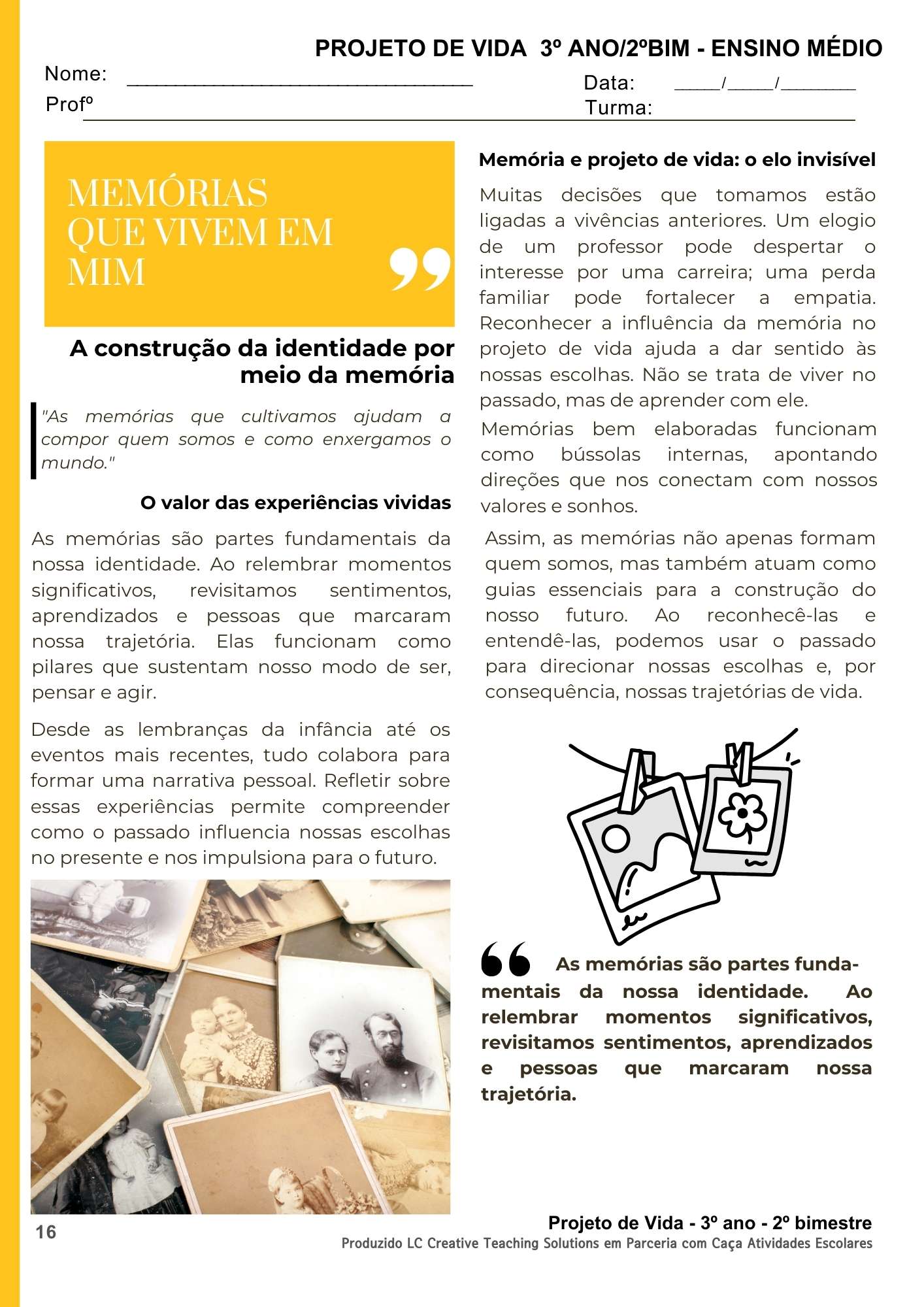 Esta apostila contém 8 ESTUDOS DIRIGIDOS de PROJETO DE VIDA para o 3º ano do Ensino Médio, referentes ao 2º bimestre de 2025.