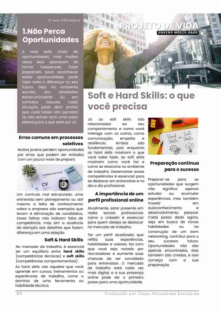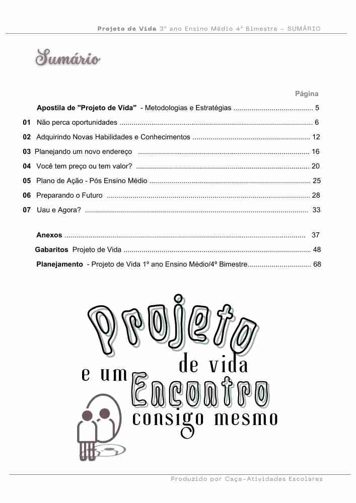 Esta apostila contém 7 ESTUDOS DIRIGIDOS de PROJETO DE VIDA para o 3º ano do Ensino Médio, referentes ao 4º bimestre de 2025.