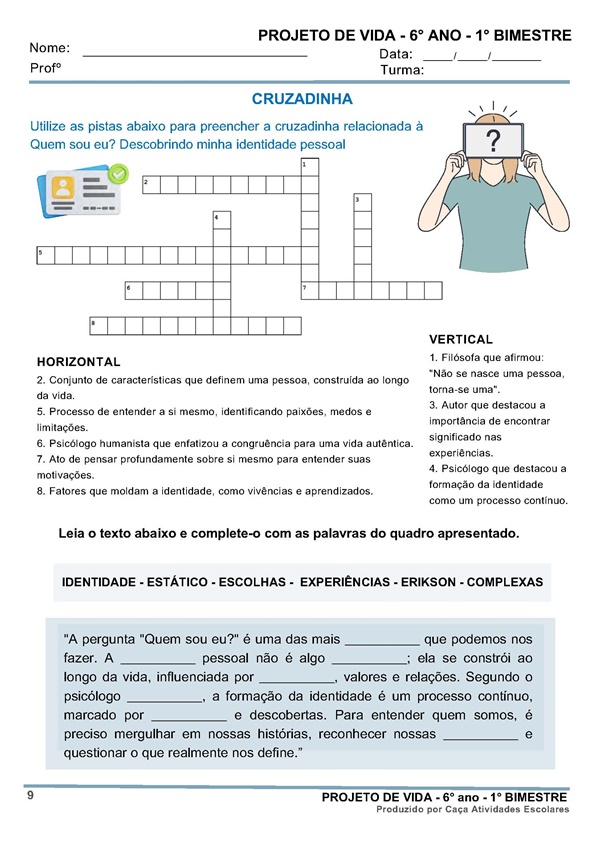 Esta apostila contém 8 ESTUDOS DIRIGIDOS de PROJETO DE VIDA para o 6º ano do Ensino Fundamental 2, referente ao 1º bimestre de 2025.
