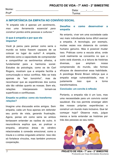 Esta apostila contém 8 ESTUDOS DIRIGIDOS de PROJETO DE VIDA para o 7º ano do Ensino Fundamental 2, referente ao 2º bimestre de 2025.