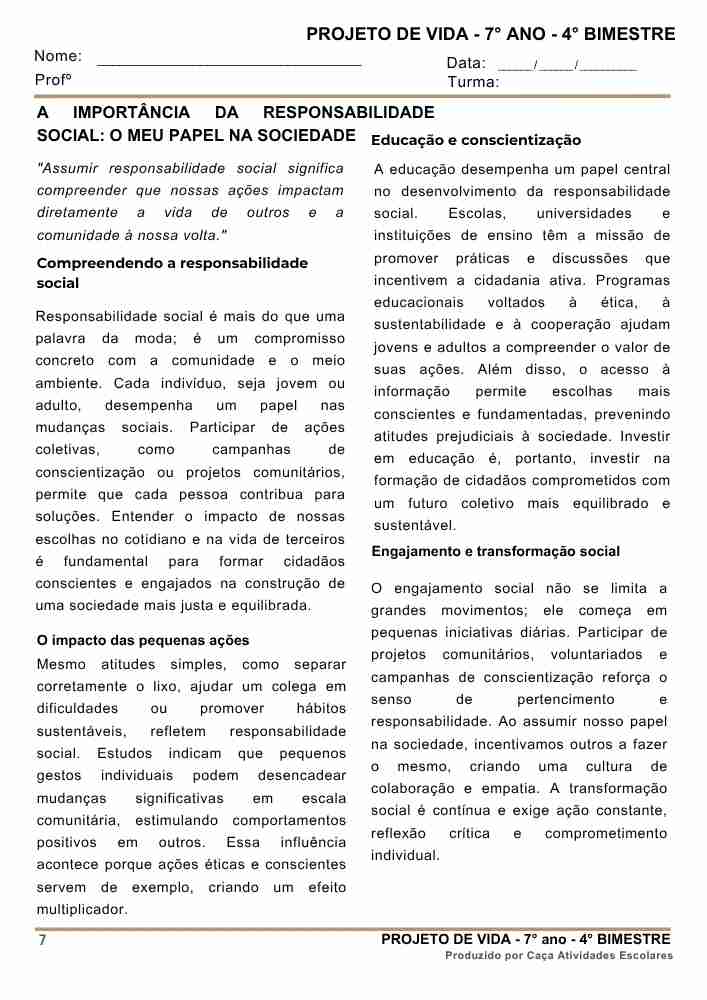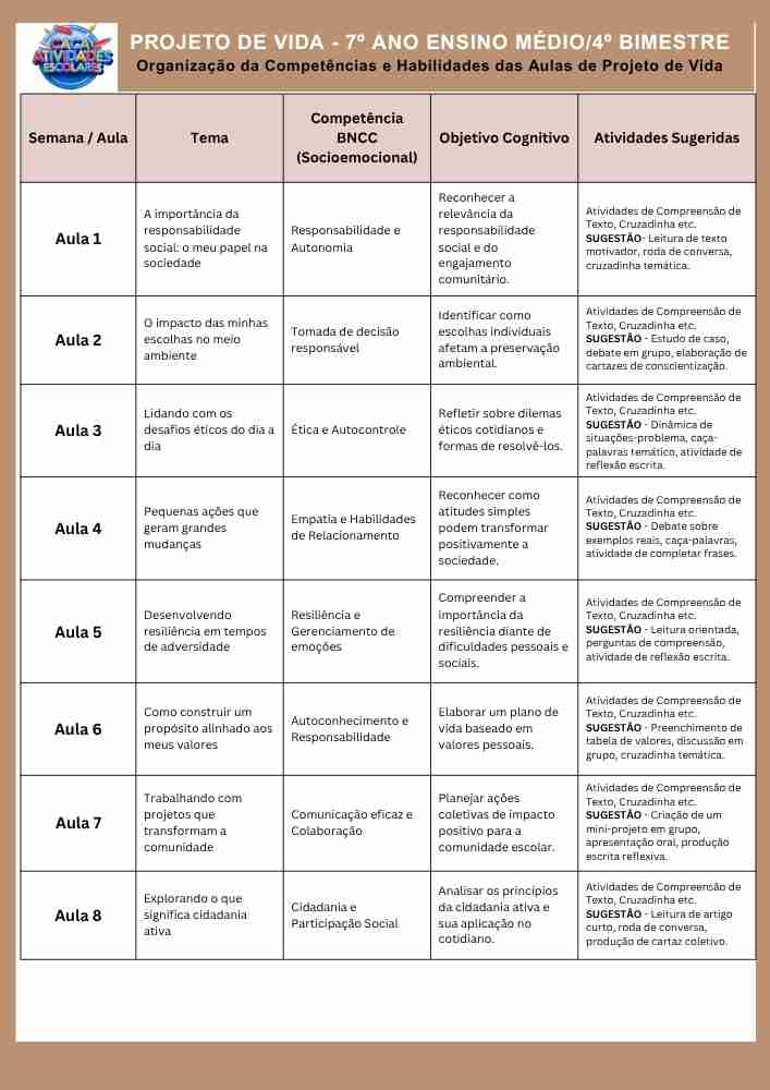 Esta apostila contém 8 ESTUDOS DIRIGIDOS de PROJETO DE VIDA para o 7º ano do Ensino Fundamental 2, referente ao 4º bimestre de 2025.