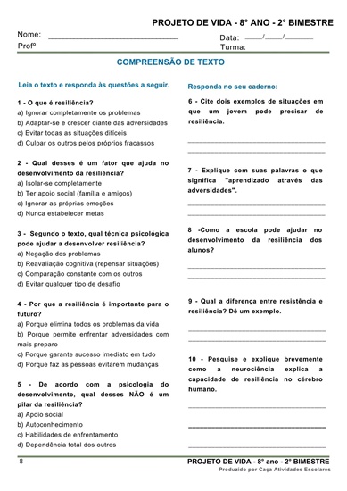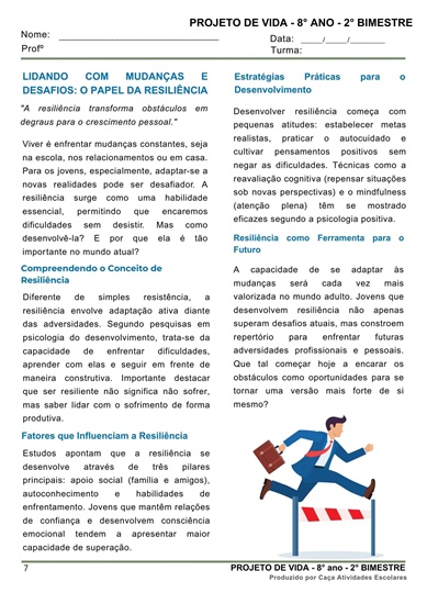 Esta apostila contém 8 ESTUDOS DIRIGIDOS de PROJETO DE VIDA para o 8º ano do Ensino Fundamental 2, referente ao 2º bimestre de 2025.