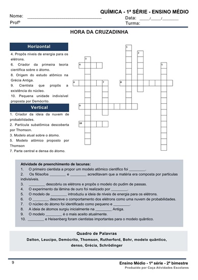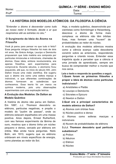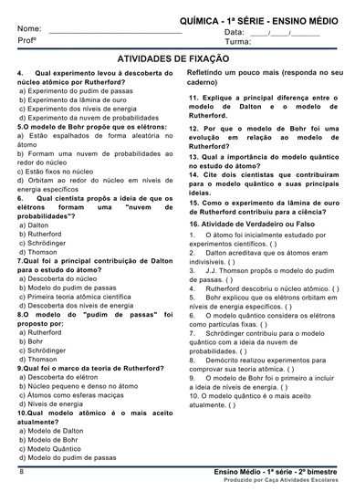 Esta apostila é referente ao 2º BIMESTRE de QUÍMICA para o Ensino Médio (1º ano). Este projeto terá 12 apostilas com atividades variadas. Em cada uma das apostilas você encontrará: