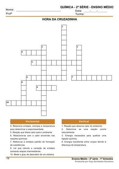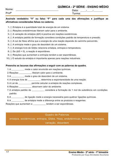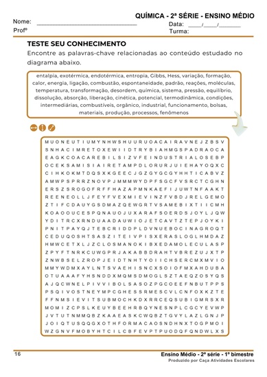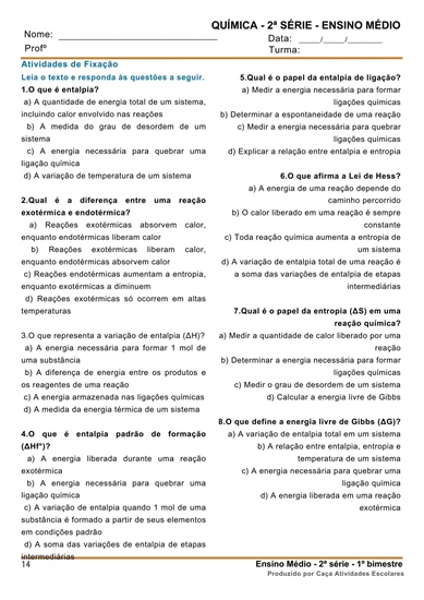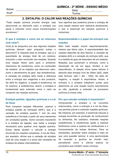 Esta apostila é referente ao 2º BIMESTRE de QUÍMICA para o Ensino Médio (2º ano). Este projeto terá 12 apostilas com atividades variadas. Em cada uma das apostilas você encontrará:
