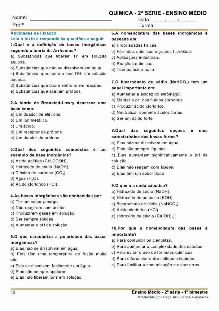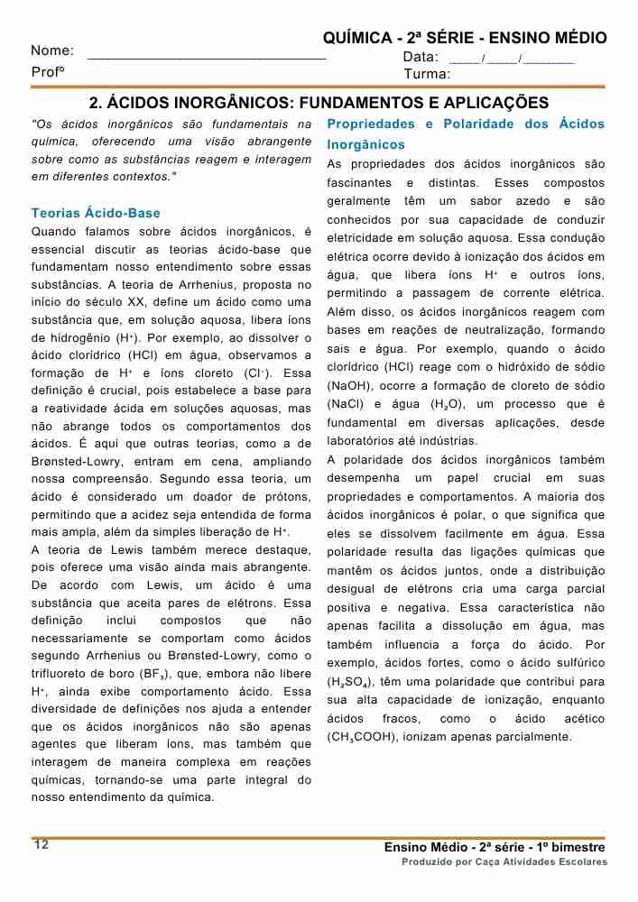 Esta apostila é referente ao 3º BIMESTRE de QUÍMICA para o Ensino Médio (2º ano). Este projeto terá 12 apostilas com atividades variadas. Em cada uma das apostilas você encontrará: