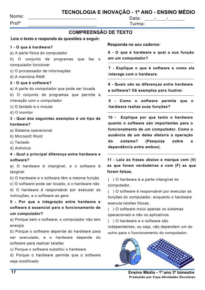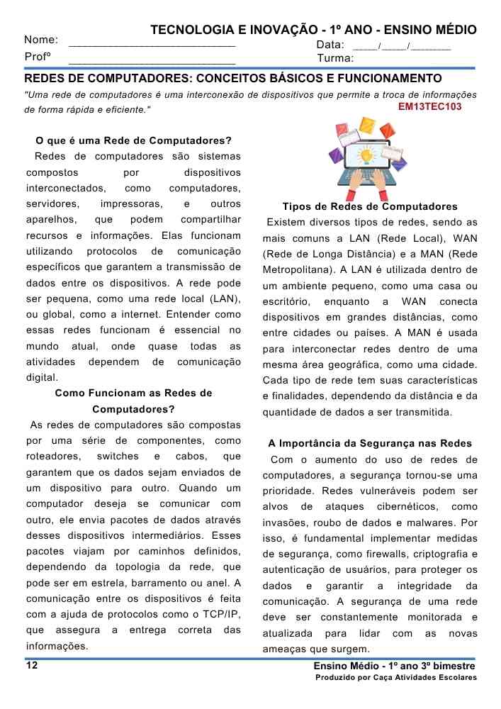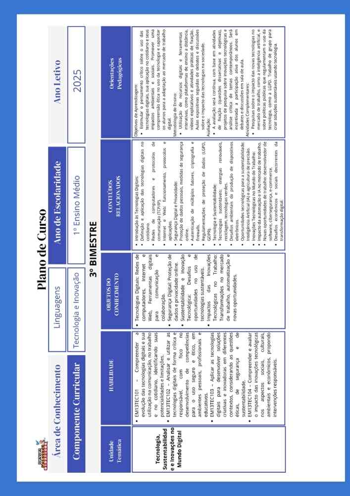 Esta apostila contém 10 ESTUDOS DIRIGIDOS de TECNOLOGIA E INOVAÇÃO para o 1º ano do Ensino Médio, referente ao 3º bimestre de 2025.