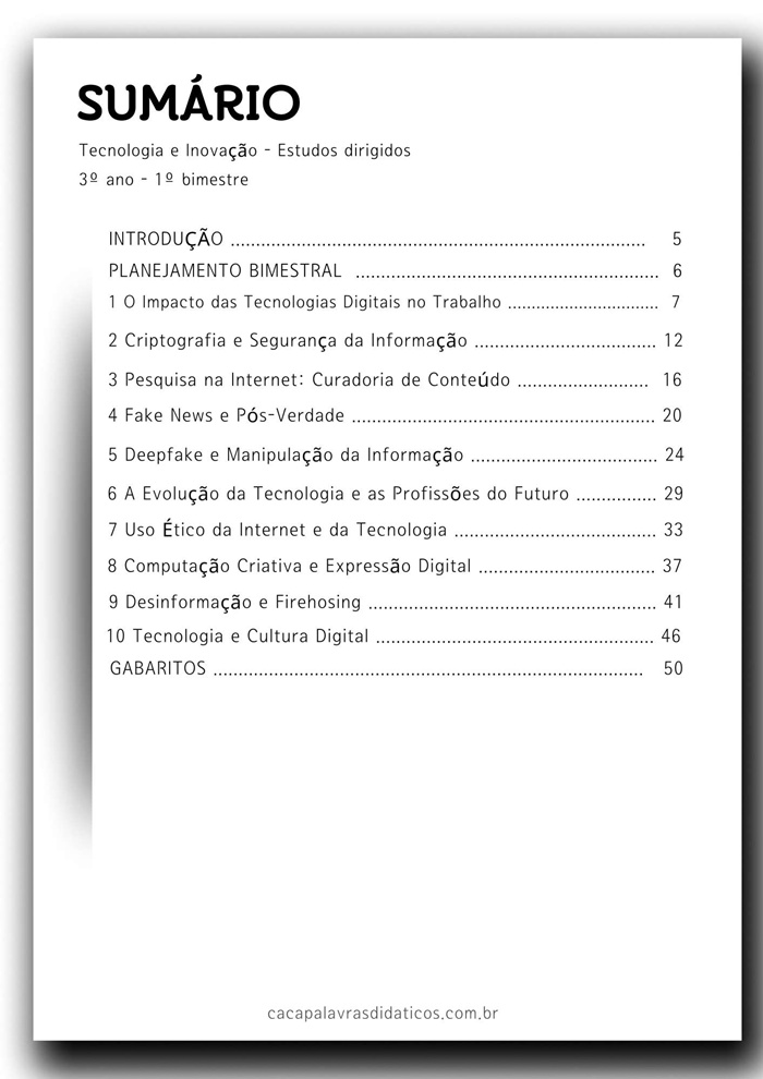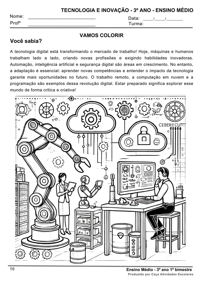 Esta apostila contém 10 ESTUDOS DIRIGIDOS de TECNOLOGIA E INOVAÇÃO para o 3º ano do Ensino Médio, referente ao 1º bimestre de 2025.