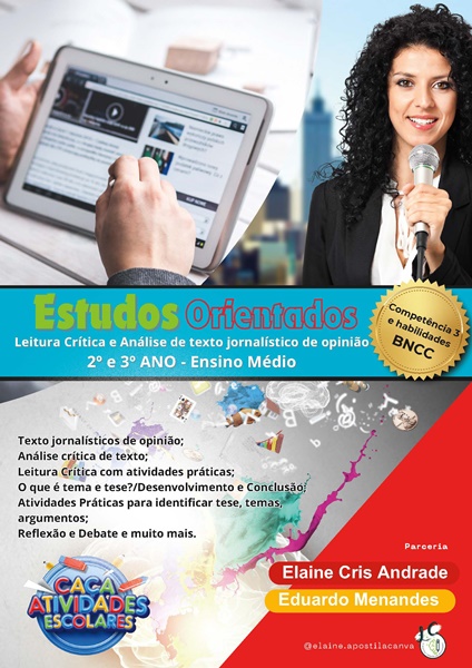 Apostila “Estudos Orientados” para o 2º e 3º ano do Ensino Médio: Leitura crítica e análise de textos jornalísticos de opinião com atividades práticas, reflexões e debates. Prepare seus alunos para desenvolver argumentos sólidos e analisar o impacto das redes sociais na saúde dos jovens.