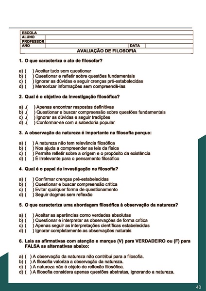 Esta apostila conta com 8 temas de FILOSOFIA PARA O 6º ANO – 1º E 2º BIMESTRE.