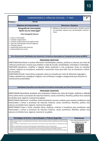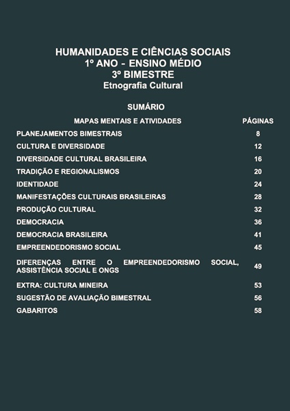 Esta apostila conta com 11 temas de HUMANIDADES E CIÊNCIAS SOCIAIS – 3º BIMESTRE – PLANO DE CURSO DE MINAS GERAIS.